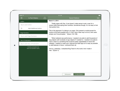 Escribir una bibliografía puede resultar complicado. Hacer un seguimiento de las citas y cómo darles formato puede ser francamente desalentador. iSource hace el trabajo rápido de formatear entradas bibliográficas y citas en el texto, además de guardar estas entradas con formato en un solo lugar, además de ser simple y fácil de usar. iSource incluso incluye una lista de las reglas sobre los formatos más comunes para su uso como guía de referencia.