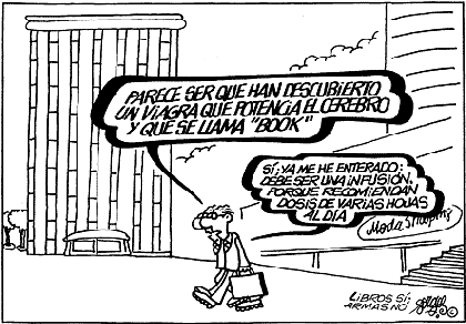 Y este es el mejor homenaje que le podemos hacer desde Universo Abierto. Algunas de sus tiras humorísticas que hablan de libros, lectura y bibliotecas en nuestra sección de PreTextos, donde recogemos manifestaciones culturales en torno a la imagen del libro y las bibliotecas. Como decía Georges Brassens en su tema Chanson pour l’Auvergnat: