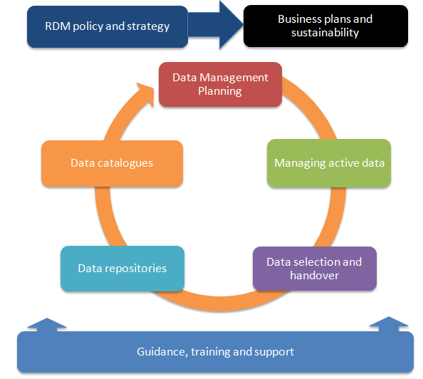Los servicios de datos de investigación en bibliotecas universitarias a menudo se perciben como competencia de los bibliotecarios de enlace. Ha surgido una variedad de modelos mediante los cuales estos servicios pueden desarrollarse o implementarse. Estos incluyen modelos jerárquicos y aquellos basados más en el interés individual. Sin embargo, con cualquier modelo es de vital importancia la identificación de apoyo y oportunidades para la participación de la administración y gestión de la biblioteca con el fin de crecer y evaluar la implementación de servicios de datos de investigación.