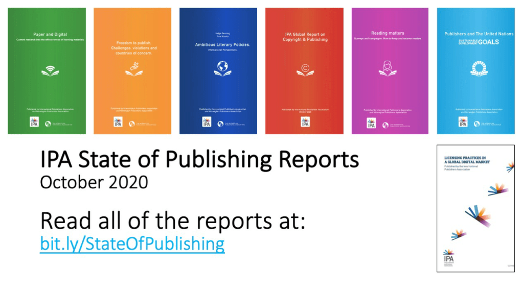 La Asociación Internacional de Editores presentó un nuevo conjunto de siete informes que analizan aspectos clave de la industria editorial internacional. Contienen una gran cantidad de información en estos informes que los editores y las asociaciones de editores de todo el mundo pueden utilizar en su trabajo y en sus interacciones con los gobiernos locales.