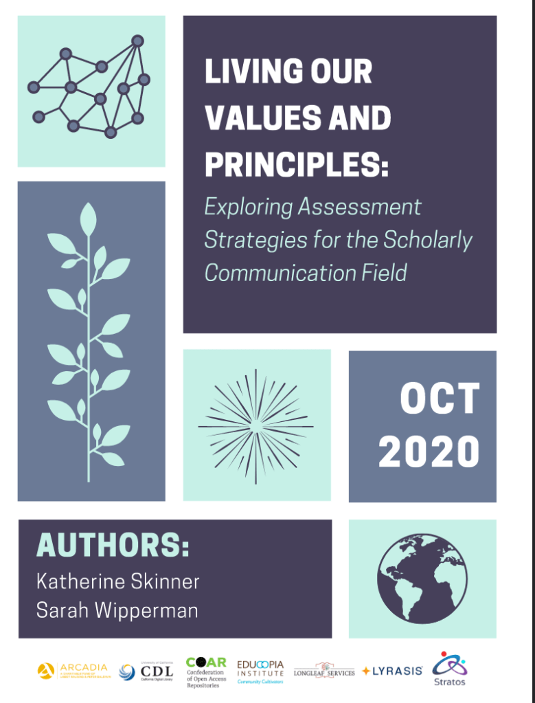 Skinner, K ; Wipperman, S. Living Our Values and Principles: Exploring Assessment Strategies for the Scholarly Communication Field. Library Publishing project (2019-2022), Educopia Institute, California Digital Library, and Stratos, 2020