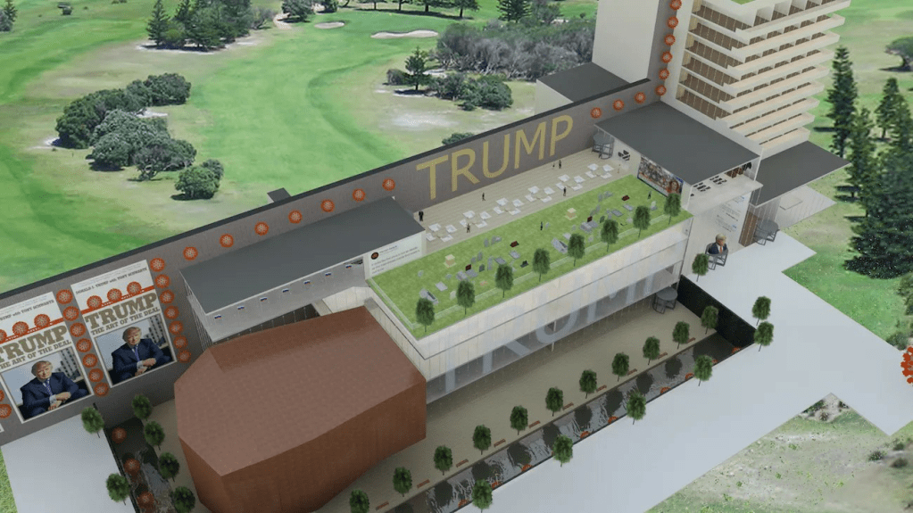 Compró el nombre de dominio del sitio web, djtrumplibrary.com, poco después de las elecciones de 2016 y diseñó el modelo de construcción, comenzando con una piscina reflectante en el sótano. «Eso fue originalmente dedicado, como una parodia, a todas las personas que íbamos a perder en la Tercera Guerra Mundial», dice el arquitecto. «Sabía que algo iba a salir muy mal con esta presidencia, así que tener un memorial por alguna tragedia fue el primer movimiento de diseño que hice».