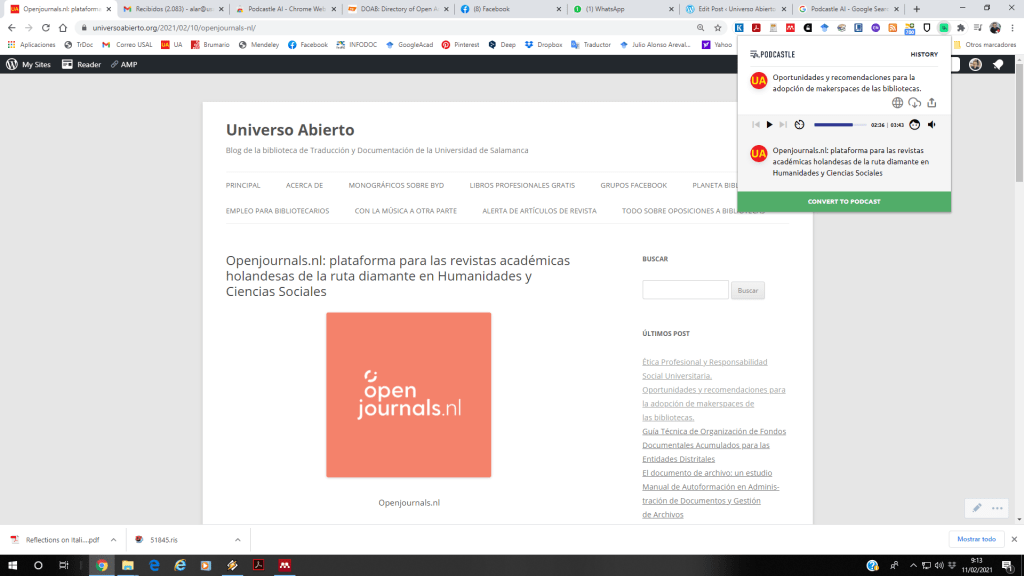 La aplicación es gratuita, y puedes registrarte con tu correo, con facebook o con Google+. Luego simplemente vas a la extensión, haces clic en el icono de Podcastle AI y convierte rápidamente el texto que estás visualizando en un podcast que puedes escuchar, descargar o enviar a la nube. Sencillo, fácil y y rápido.