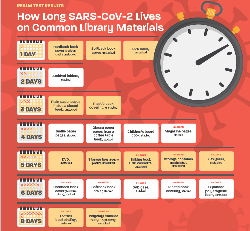 How long SARS-CoV-2 lives on common library materials: REALM Test Results