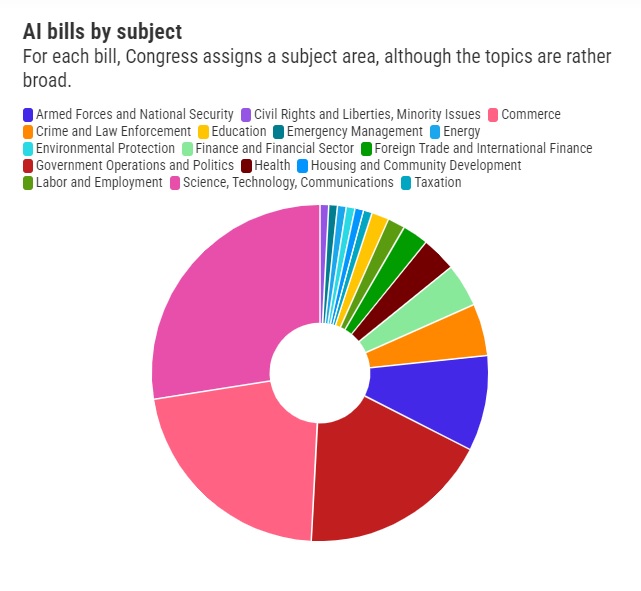 En 2024, más de 120 proyectos de ley relacionados con la inteligencia artificial (IA) están siendo discutidos en el Congreso de EE.UU. Estos proyectos son muy variados, abarcando desde mejorar la educación sobre IA en escuelas públicas hasta exigir que los desarrolladores revelen el uso de material con derechos de autor en el entrenamiento de modelos de IA. Algunos tratan de mitigar los riesgos biológicos de la IA o regular el uso de deepfakes en campañas políticas y pornografía no consensual. Incluso hay un proyecto que prohíbe que la IA lance armas nucleares sin intervención humana.