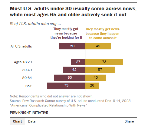 Pew Research Center. “The Age Divide in How Americans Think About News.” Pew Research Center, 11 de febrero de 2026. https://www.pewresearch.org/journalism/2026/02/11/the-age-divide-in-how-americans-think-about-news/