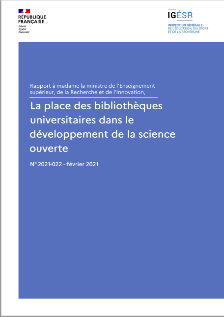 Cachard, Pierre-Yves : Dupuis, Monique ; Froment, Bernard. La place des bibliothèques universitaires dans le développement de la science ouverte. Ministère de l‘Enseignement supérieur et de la Recherche, 2021